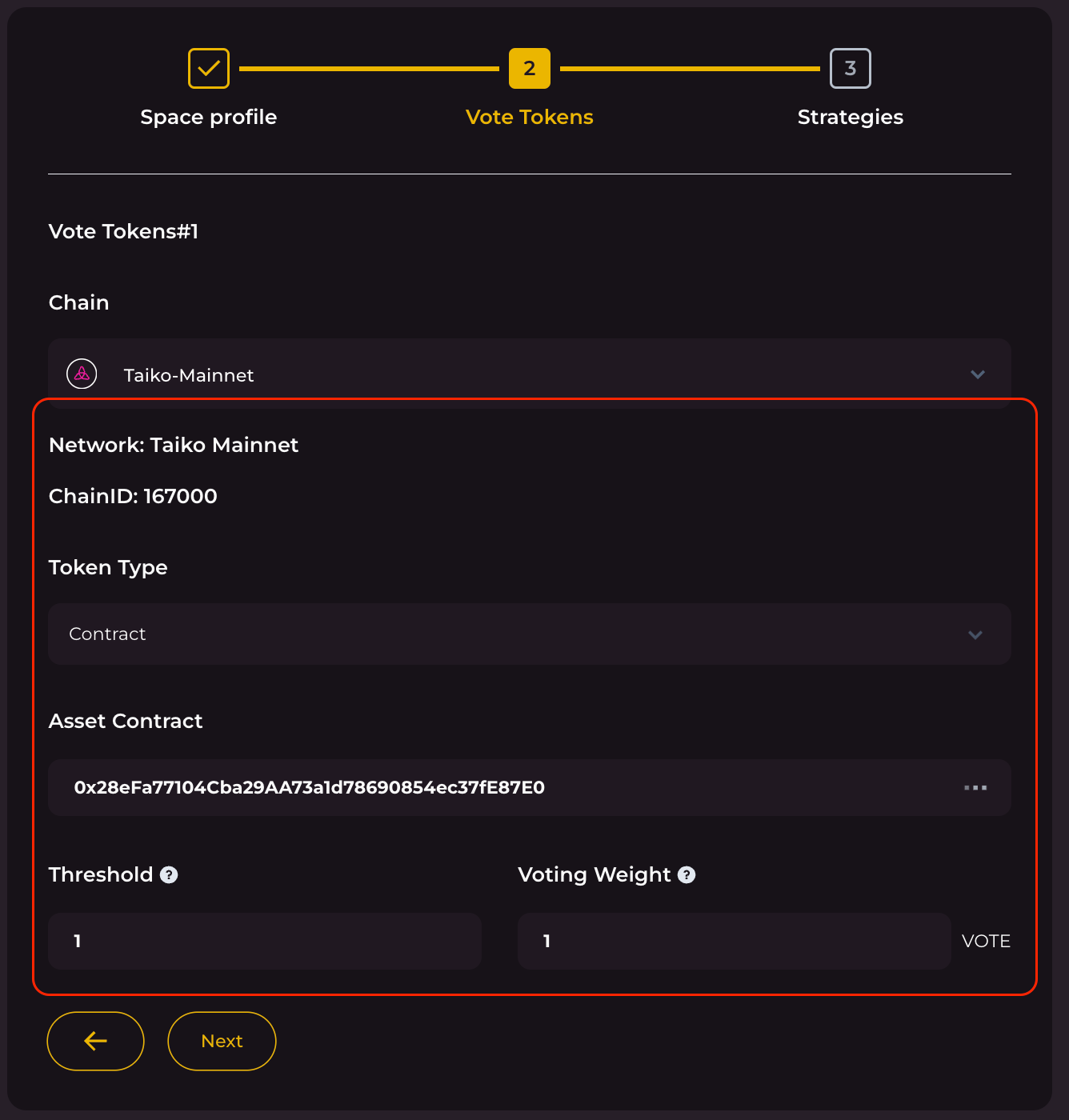 Once set, DVOTE will automatically calculate each participant’s voting power based on the combined balances of the selected assets.