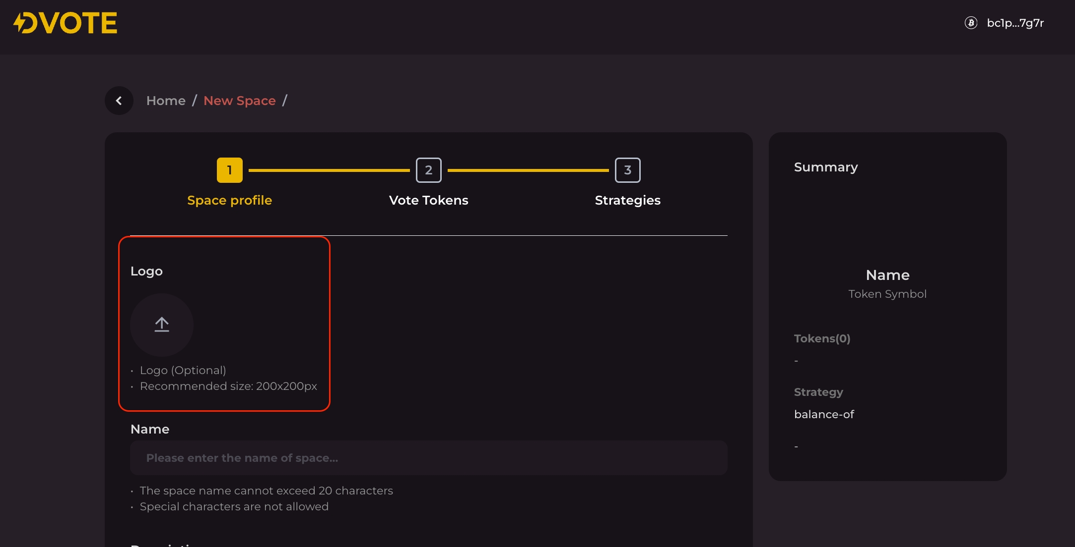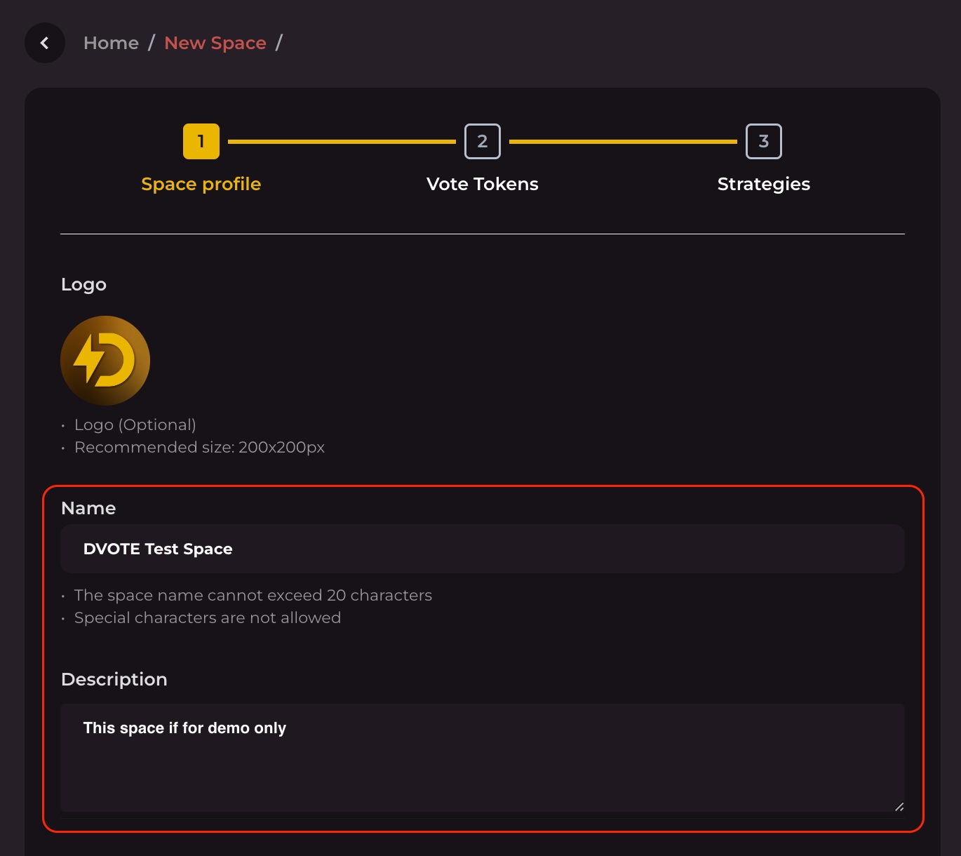 Add a name to your space. There's a limit of 20 characters or less. You also need to add a brief description of your space and organization. This step is necessary to help others understand what your space is about.
