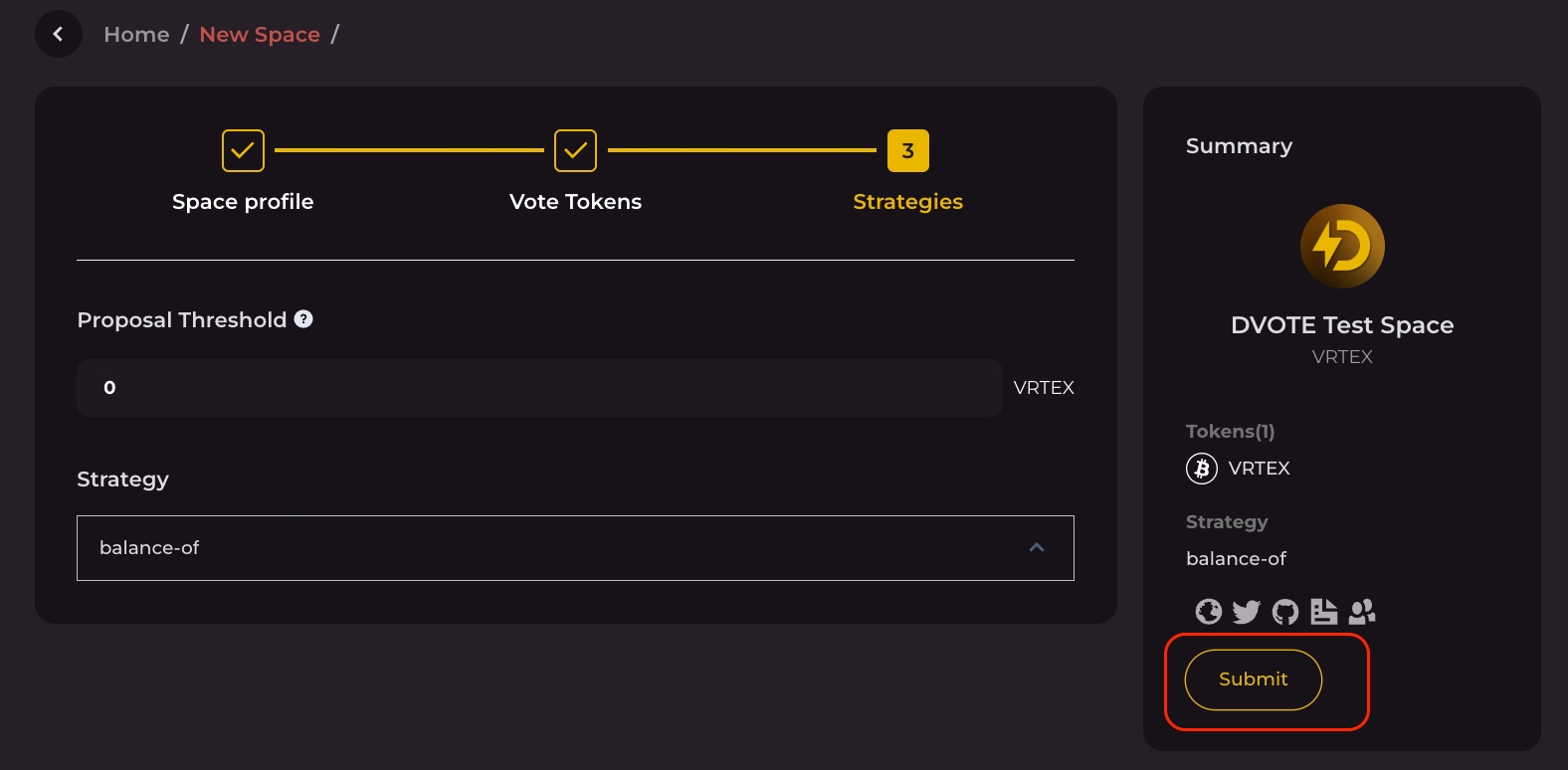 When you're finished with everything, click Submit and sign a message in your wallet. After that, you're all set—you've created your space successfully.