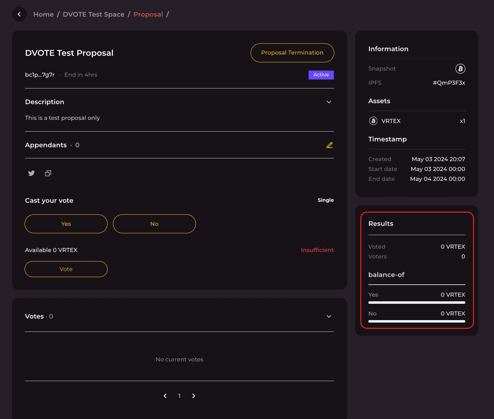 Go to the space page on DVOTE and find the active proposal you want to vote on.